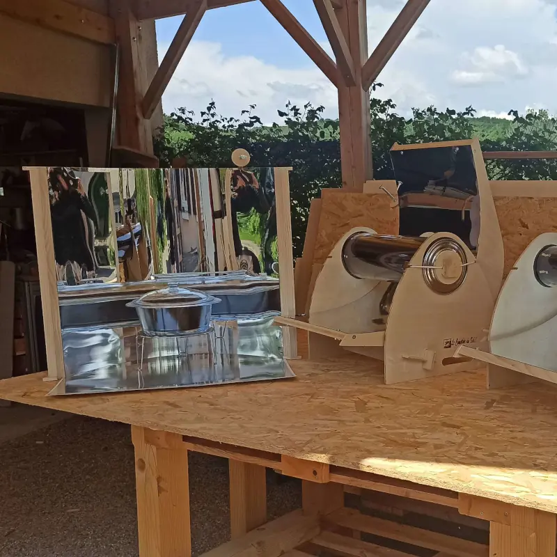 Des appareils de cuisson solaire, des cuiseurs économes biomasse, des objets low-tech artisanaux à la vente directe...