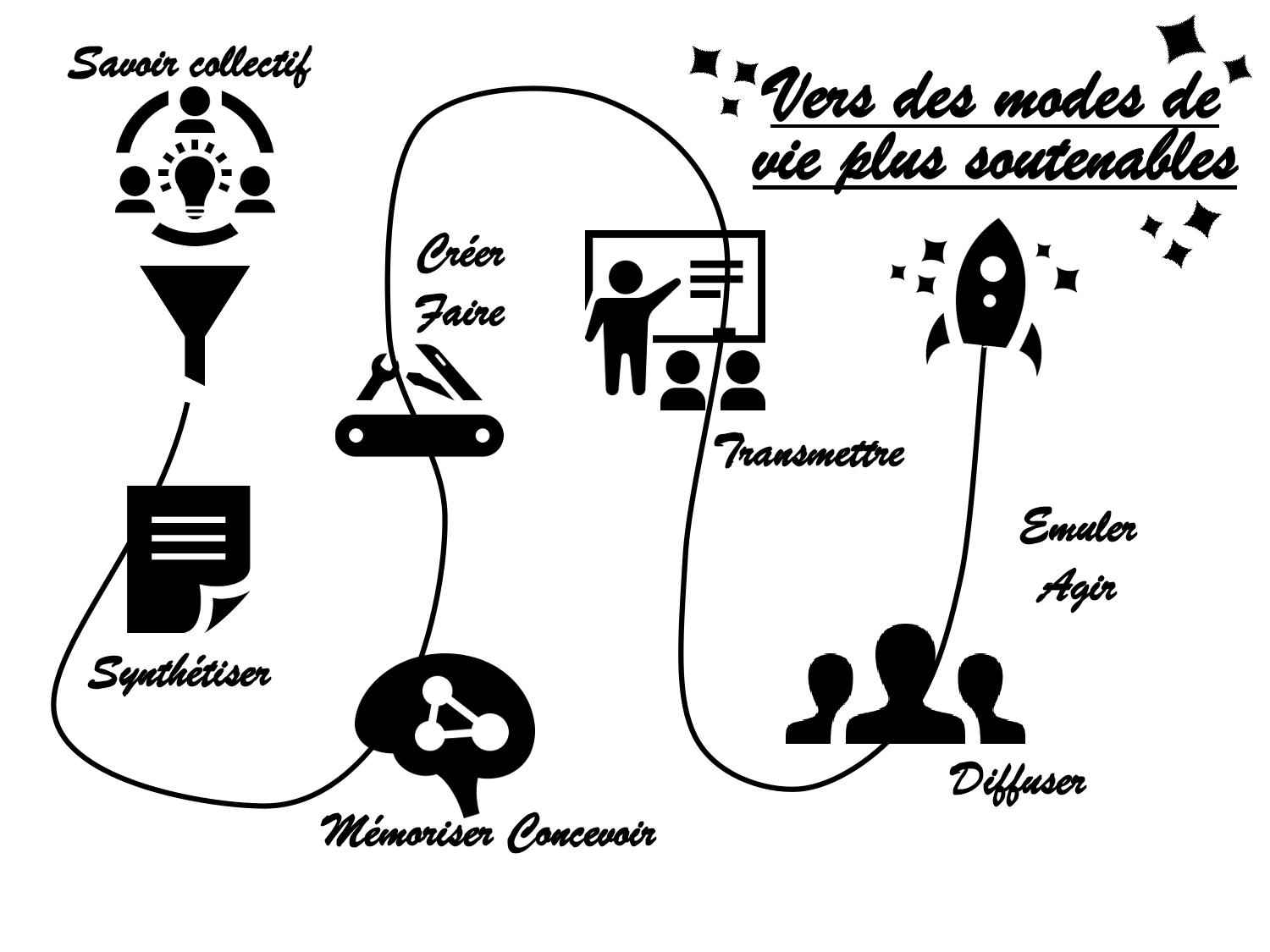 Notre initiative s’incarne autant à travers les valeurs de la low-tech, en questionnant l’utilité, l’accessibilité et la durabilité de nos choix et actions, que celles de la transmission de connaissance et de savoirs-faire.